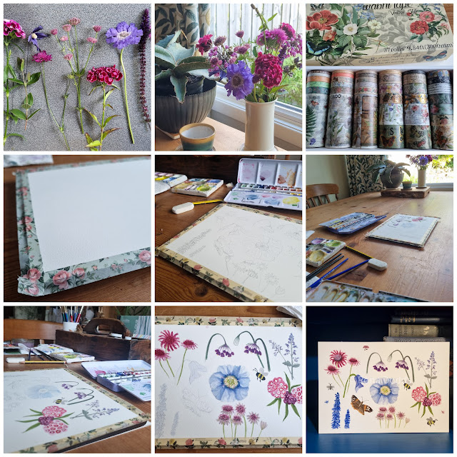 | The process of a painting - from the front garden, to a vase to a painting |